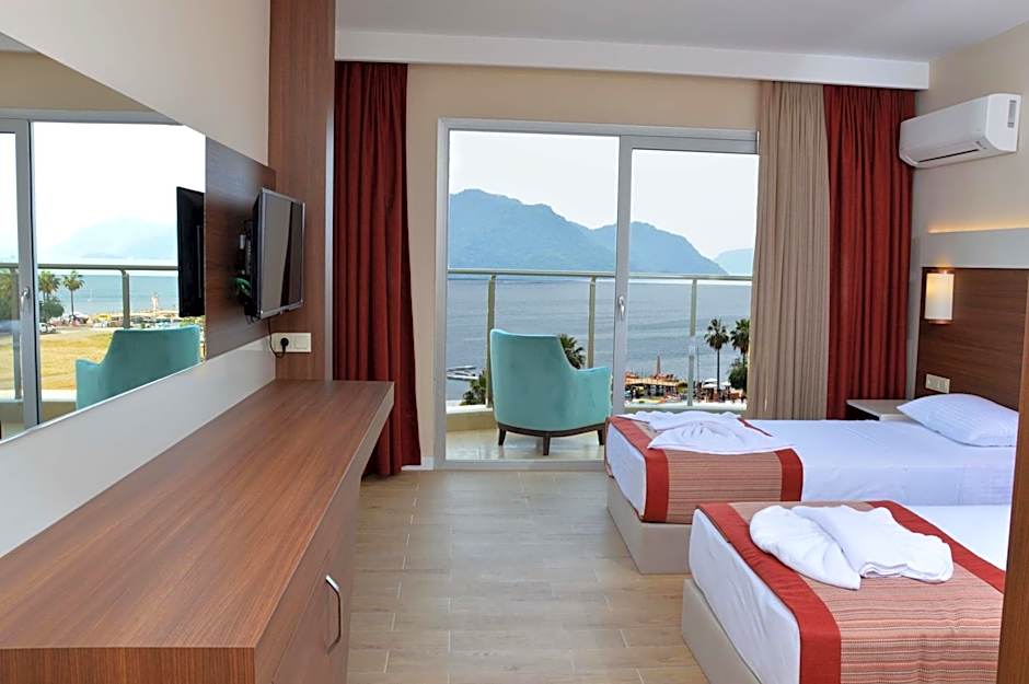 DOUBLE SEA VIEW is 377 square feet and includes a king-size bed 150-183 width plus extra beds on demand.